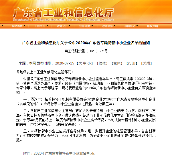 本次甄選共選出了822家廣東省企業為2020年廣東省專精特新中小企業,其中,中山市共有46家入選,菲思盾公司名列其中。菲思盾能夠榜上有名,不僅體現了評審組委會,對企業的經營、技術和市場前景等條件的認可、對公司過去經營業績的認可,同時,也讓菲思盾在前進的道路上更有動力。