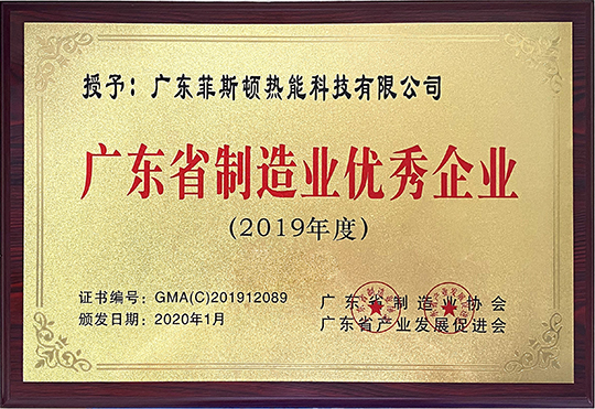 1月,廣東菲思盾熱能科技有限公司榮獲“廣東省制造業(yè)優(yōu)秀企業(yè)”稱號。