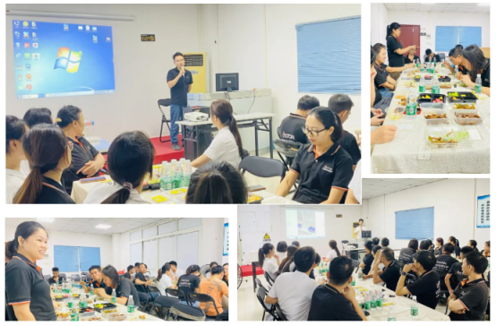 茶話會上布置精美,水果美食應有盡有,每一位員工臉上洋溢著節日的喜悅笑容,場面溫馨熱鬧。面對各種售后反饋質量問題,大家都能踴躍發表自己的意見和解決方法,收獲獎品的背后亦是鞏固全體員工對產品質量的認識和重視態度,強調生產現場工藝規范化、標準化的嚴格遵守。