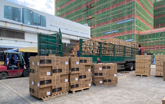 現場一件件貨物整齊劃一的排列在一旁等待裝車,工作人員忙碌的身影來來往往,像是菲思盾在困境中負重前行,力爭求勝的縮影,亦是對我們日以繼夜、全力以赴促生產的鼓勵和肯定。