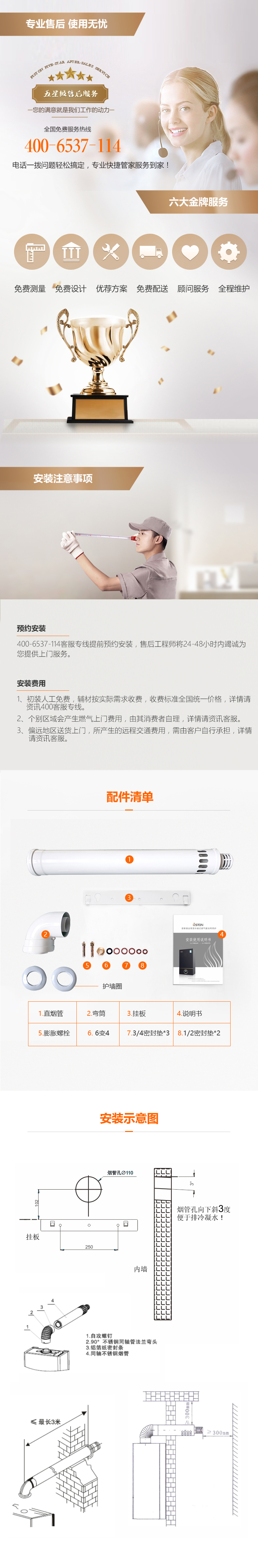 d:煙管裝好,使用一個彎頭總長不能超過3米,兩個彎頭總長不能超過兩米。