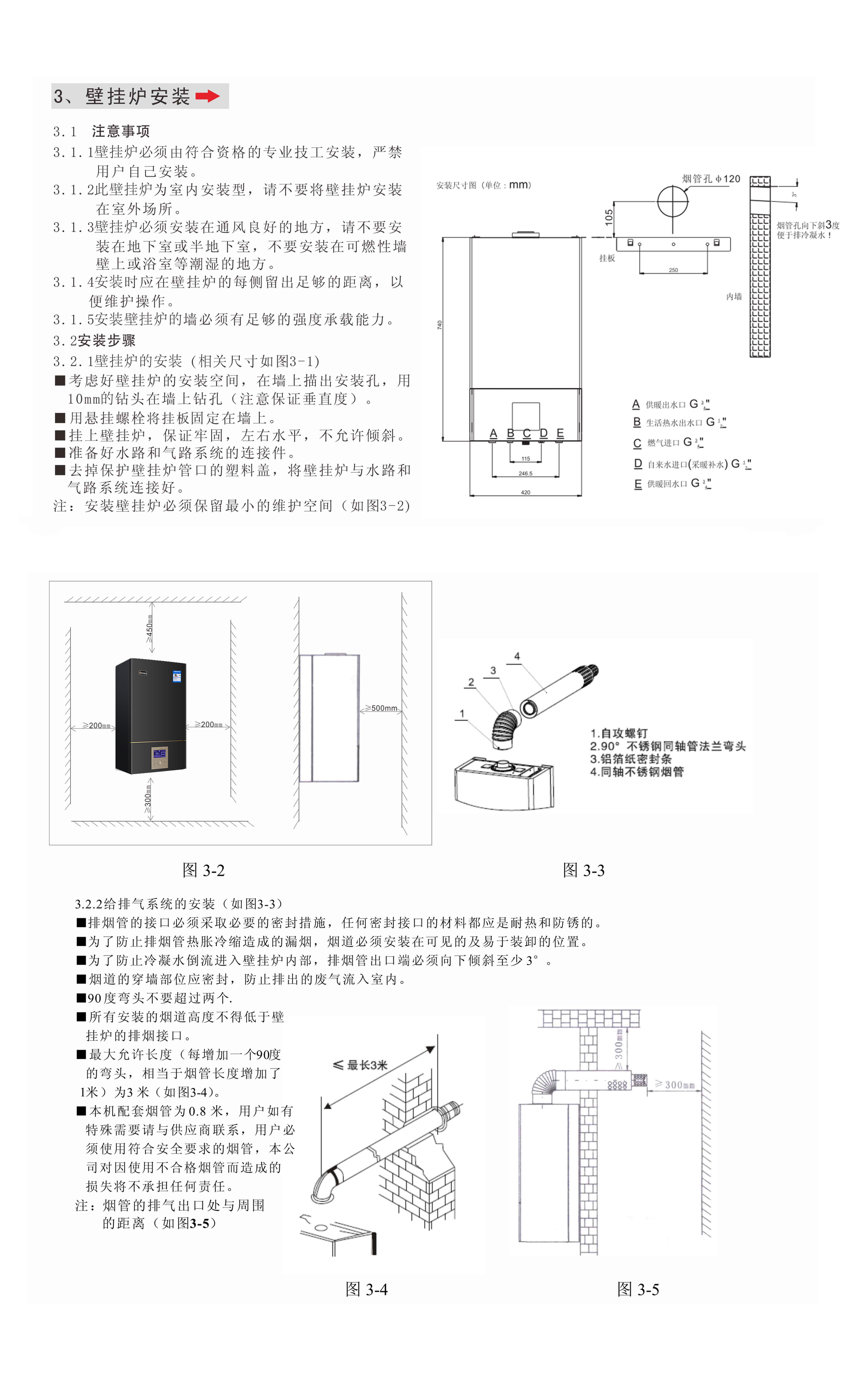 4.在安裝壁掛爐時,務必在壁掛爐采暖進水管加裝管道過濾器,若不加裝管道過慮器會導致管道雜物進入壁掛爐,造成主熱交換器堵塞或損壞。