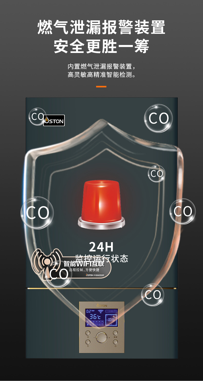 內置燃氣泄漏報警裝置,秒級預警,安全加倍。