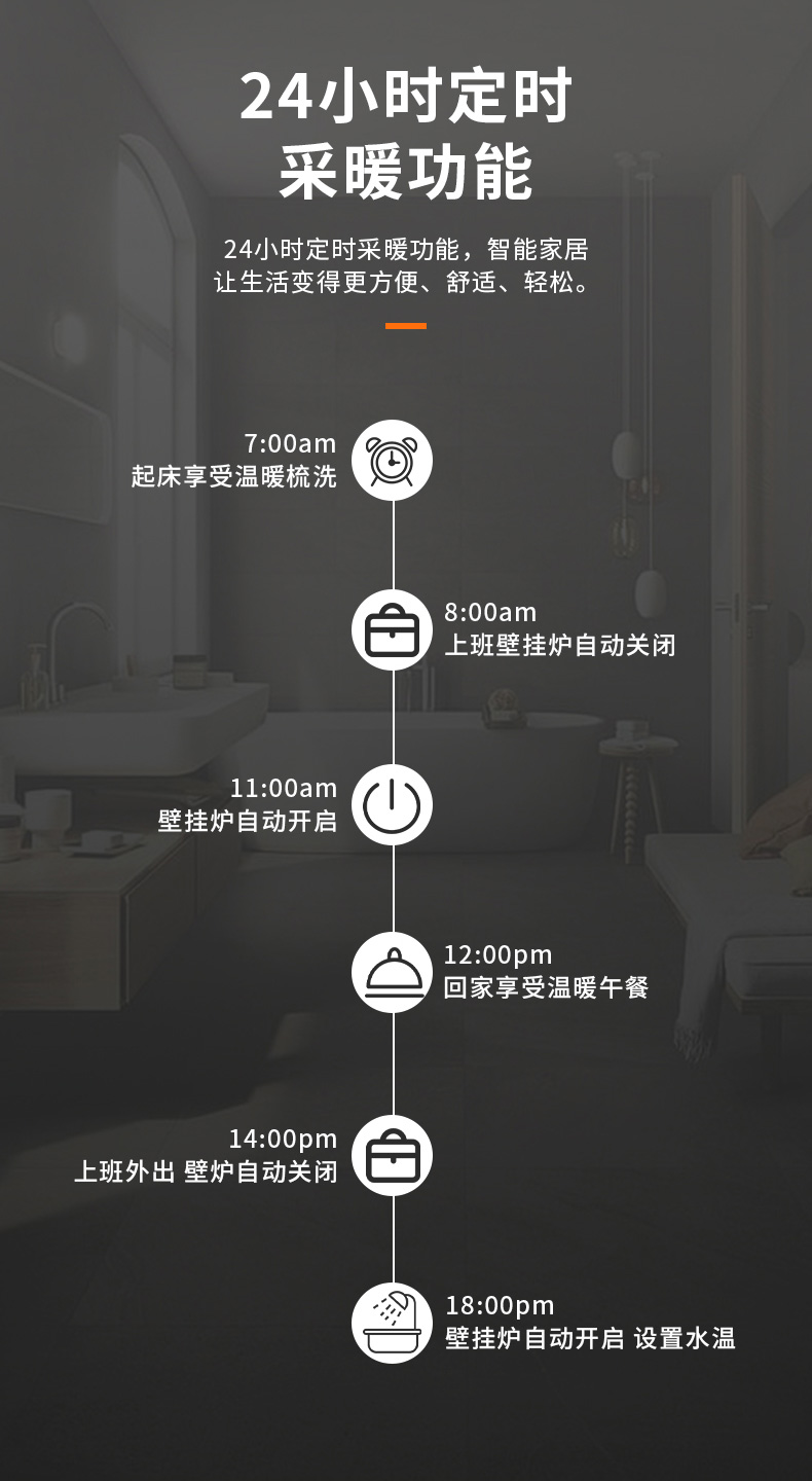 24小時定時采暖功能,生活更節能、更方便、更舒適