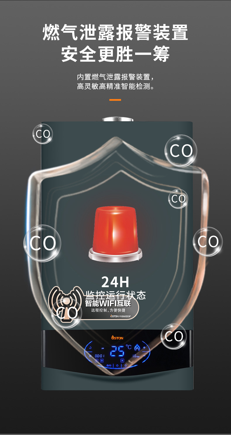 內置燃氣泄漏報警裝置,秒級預警,安全加倍。