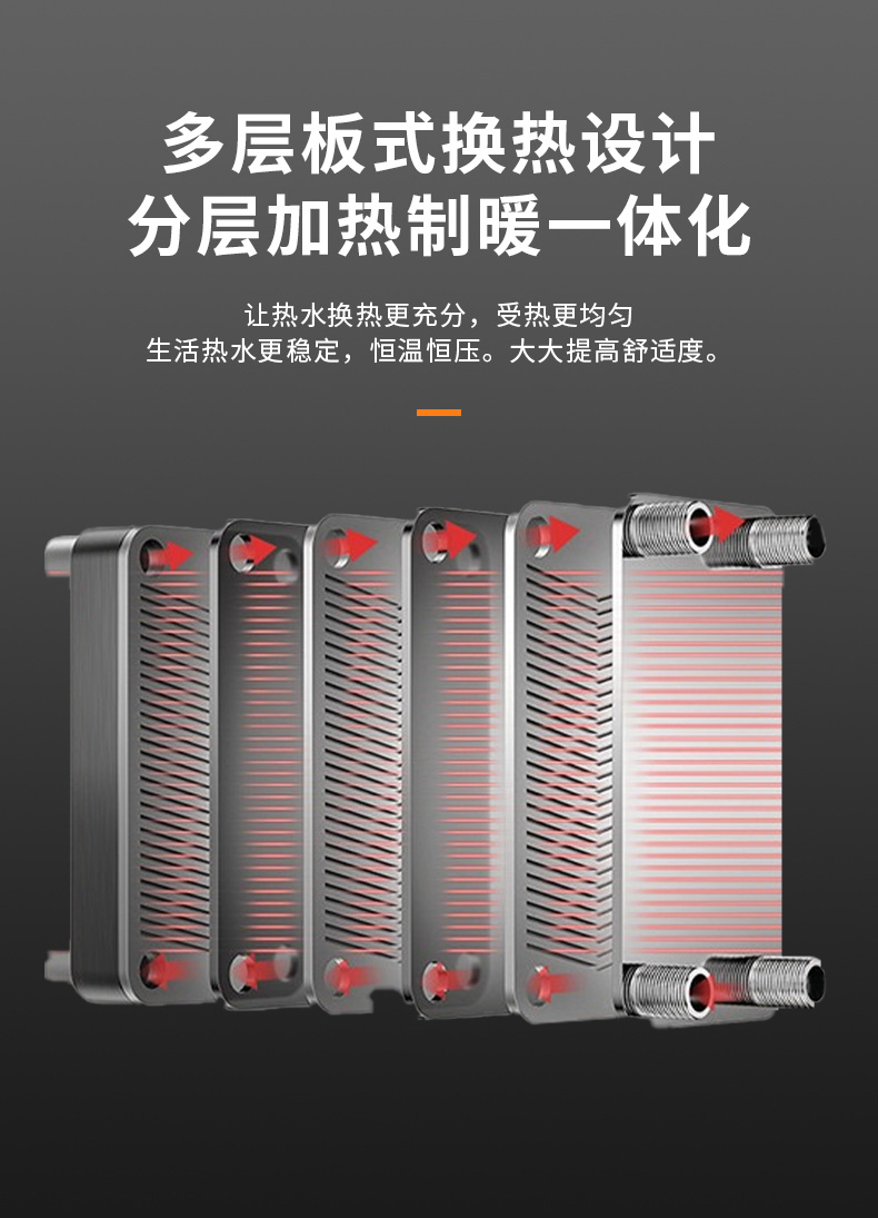 獨特蜂窩分層板式換熱技術,一年四季水溫精準恒定。