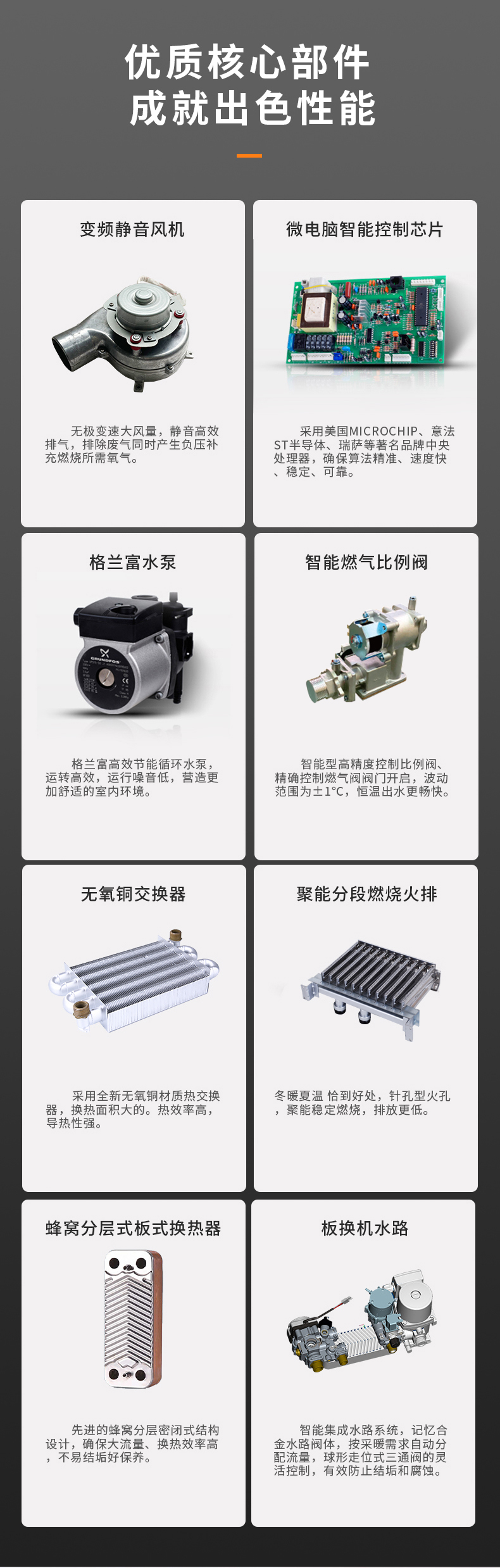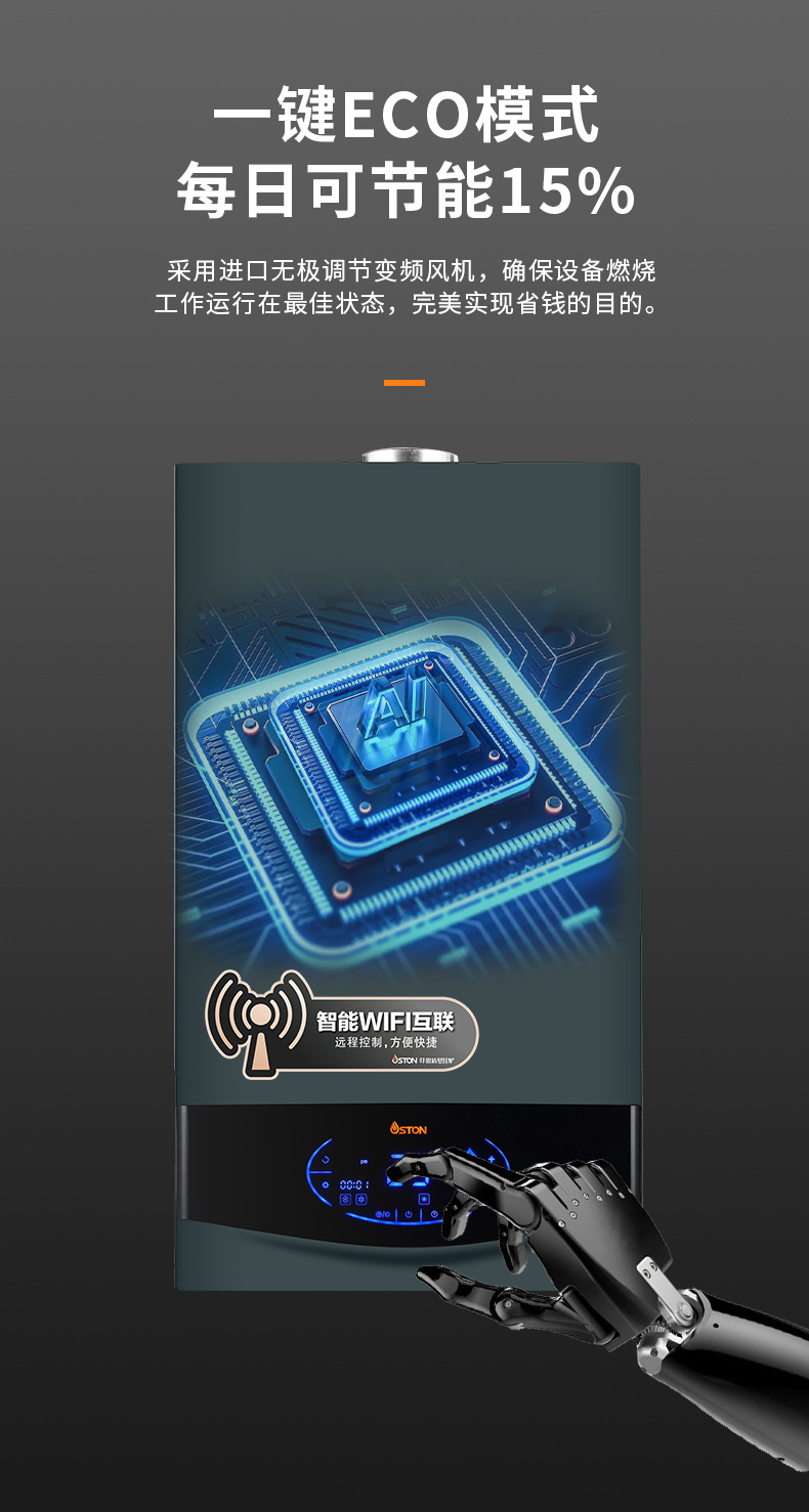獨特隔音燃燒設計,進口靜音配件,更節能、更靜音(噪聲低至45dB)。